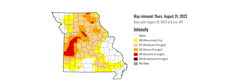 • 5.13% of the state of Missouri is listed in Extreme Drought, unchanged from last week.