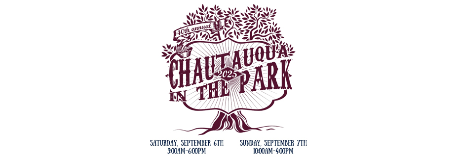 Chautauqua in the Parks is Saturday from 9:00 am to 6:00 pm and Sunday from 10:00 am to 4:00 pm.