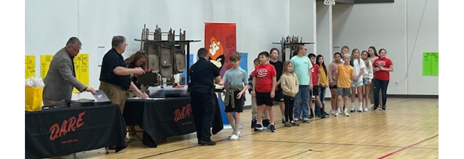 One-hundred-twenty-four fifth-grade students at Chillicothe Elementary School participated in the annual D.A.R.E. Graduation Ceremony. The students had completed ten weeks of classroom instruction focusing on communication and decision-making skills. The D.A.R.E. program in the Chillicothe R-II Schools is promoted by Superintendent of Schools Dr. Dan Weibers and funded by the Hedrick Medical Center Foundation.
