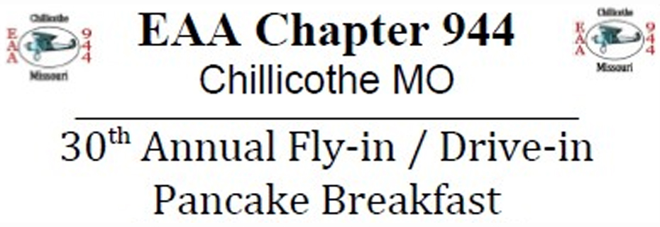 The 30th annual Chillicothe EAA Chapter 944 Fly-In breakfast will be held Saturday at the Chillicothe Municipal Airport.  The event is a fundraiser for the organization to help fund scholarships for youth who would like to learn to fly and to attend the AirVenture Academy in Oshkosh, WI.