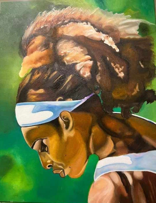 “Shades of Us,” an exhibit featuring Black artists, including Terence Lawson, a Kansas City artist who has been drawing since the age of 6. His paintings are unique in the style he has chosen, and his goal is to create one-of-a-kind paintings with vibrant colors and different textures.