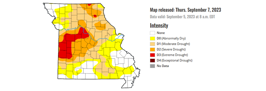- 8.53% of the state of Missouri is listed in Extreme Drought, up from 5.13%.
