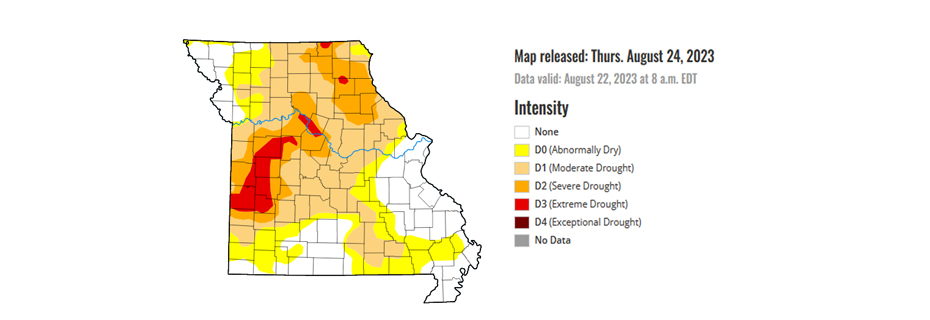 5.13% of the state of Missouri is listed in Extreme Drought, unchanged from last week.