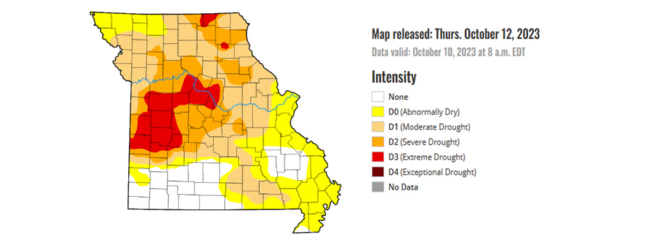 While the growing season is over for area producers, and most of the local crops are or will soon be harvested, drought conditions persist in portions of Missouri