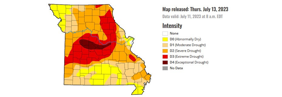 Short periods of rain in the past week are doing little to alleviate the local drought conditions. The Drought Monitor for Missouri shows no change in drought status for any of the local counties.