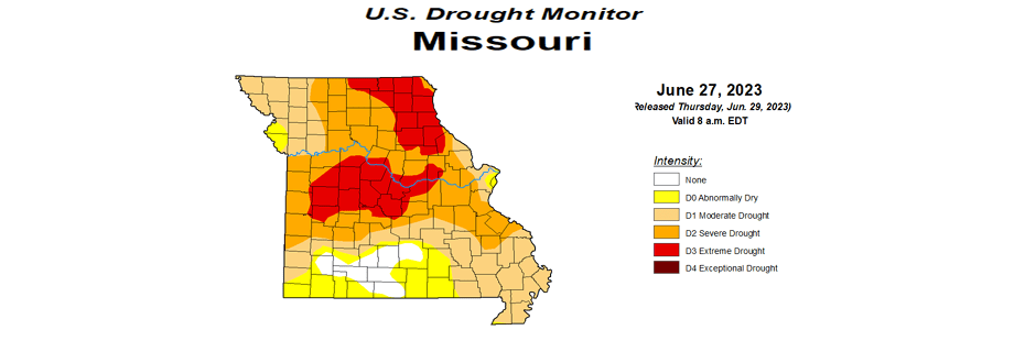 The rain on Thursday and in the remainder of the forecast will help, but drought conditions persist for most of Missouri, including Severe Drought for Livingston, Carroll, Chariton, Grundy, Linn, and Sullivan County. Most of Caldwell and Daviess are under Moderate Drought and there is a very small portion of Sullivan County under Extreme Drought.