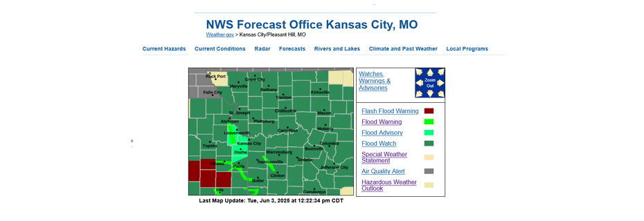 A Flood Watch is issued for all of the KCHI and much of north and central Missouri until Wednesday morning, due to the forecast for heavy rain. Flooding of streams, rivers, and low-lying areas is possible and those areas should be avoided during and after heavy rain.