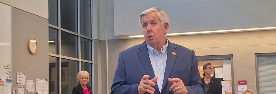Governor Mike Parson visited Chillicothe Wednesday as part of his “No Turnin’ Back” book tour. The governor joined the Chillicothe R-II School Board on a tour of the expansion of the Chillicothe Elementary School. The expansion is funded in part by ESSER funds from the state. The governor says his travels of the state has allowed him to see many examples of good use of both ESSER and ARPA funding in communities and school districts.