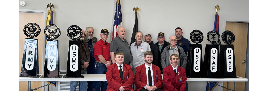 The American Spirit Team at Grand River Technical School has created pedestals and Military Branch insignias for the front of the LICOVA building on Washington Street. Denise Toole from Grand River Tech says the project began last school year with students in the Welding Class.