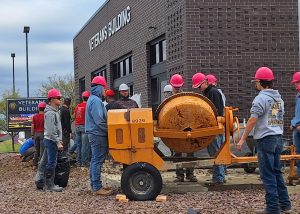 Mason Harknes, a senior at Tina and in the GRTS Building Trades program, says several students are working to prepare the bases for the pedestals.