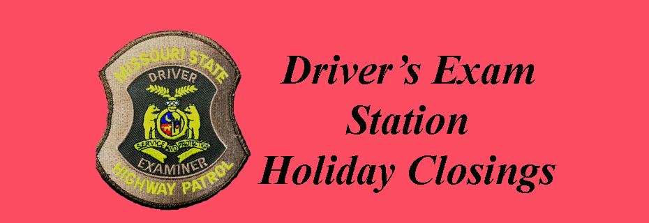 Missouri’s Driver’s examination stations will be closed for the upcoming holiday. The Missouri Highway Patrol reports that for Christmas, the Exam Stations will close on December 24th at Noon and will be closed on December 25th, re-opening on Thursday, December 26th.