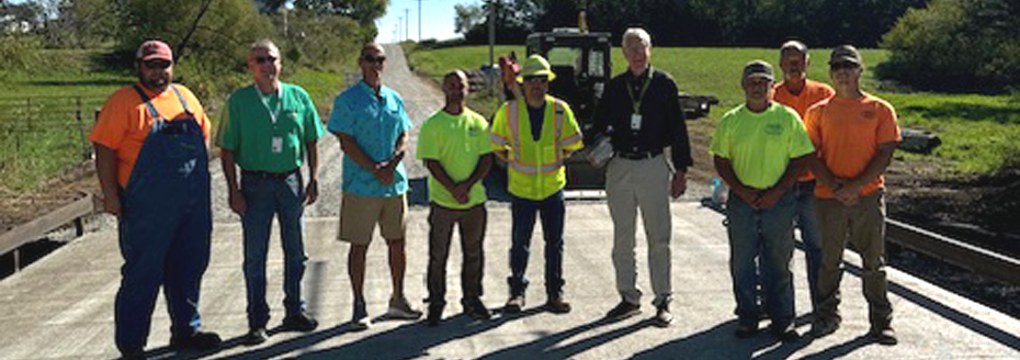 The Livingston County Road and Bridge crew announced the re-opening of LIV 216. The bridge had been closed for replacement for about four weeks. The new bridge is 24 feet wide and 30 feet long. The Livingston County Commissioners visited the site, inspecting the bridge.
