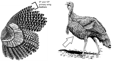 MDC instructs turkey hunters to save the 9th and 10th primary wing feathers and 3-5 breast feathers from harvested turkeys after Telechecking.