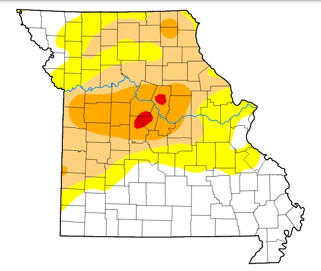 The hardest hit part of the state is Central Missouri, with severe drought conditions and a couple of pockets of extreme drought.