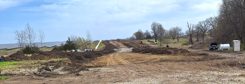 JD Bishop Construction working on grading and stormwater pipe installation.