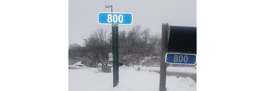 The Livingston County Health Center has signs that can be mounted to your mailbox or a signpost.  The signs are aluminum, with a highly reflective blue background and 4-inch numbers.  The cost is from 20-40 dollars.  To order a sign, contact the Livingston County Health Center at 660-646-5506.