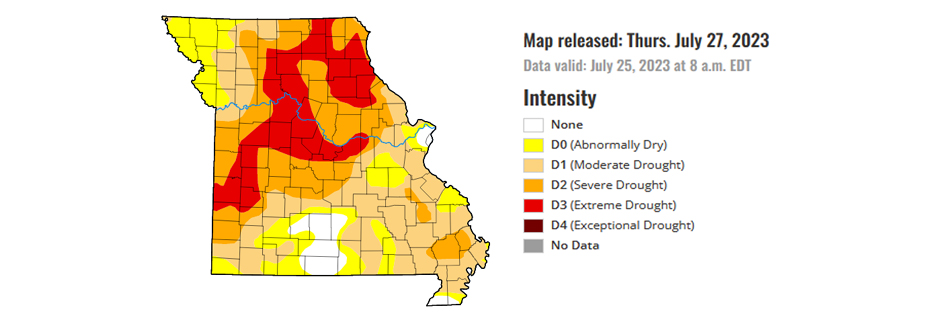 There is currently no Exceptional Drought in Missouri, which is down from 2.15% last week