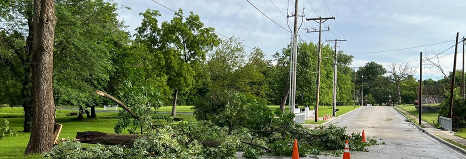 Large tree limbs and trees damaged in Stanberry, Trees down on the highway in Mercer County,