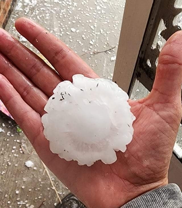 Hail reports from the storm include 1.25 to 4-inch hailstones in Daviess, Grundy, and Linn Counties, causing damage to buildings and vehicles.