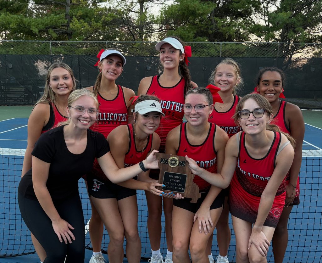 Summer Gatson and Anya Moore both played long rallies and lots of deuce games on courts #3 and #5, but they were not able to tackle Savannah’s extreme consistency. That moved the team score to 1-4, almost ending the night, and making the score look very lopsided. However, #2 Bonderer played the fastest, most dominant singles’ match of her entire season to keep the team in the hunt. On the end court, playing under a very large and loud Savannah crowd, freshman #6 Isabel Nagel won a quick first set but lost by quite a bit in her second set with the momentum in Savannah’s court going into the championship tiebreak in lieu of a third set. However, Nagel got really calm during her five-minute break and went out to dominate the tiebreak, never getting down again. This moved the team score back to a reasonable 3-4 overall. The last two matches on court for the night were senior Rian Mathews at #3 and sophomore Smith at #1. Neither matches were within reach by that point, though, as both Chillicothe athletes were down a set and losing in their second sets. Every game they played went to deuce, but they were unable to close those games. Eventually, the #3 court finished with a loss before the #1s could wrap-up, so with the score at 3-5, the team dual was called in favor of Savannah. Coach Chambers was quoted as saying, “If you’ve gotta lose, you want to lose to the best while playing your best, and that’s exactly what our girls did tonight. To make it such a closer match than it was in early September is a testament to our athlete’s growth and grit.” The Savannah coach Kelly Jones was even overheard telling Coach Chambers, “Your girls have gotten so much better compared to last month,” which is all a coach can ask of her athletes in post-season play.