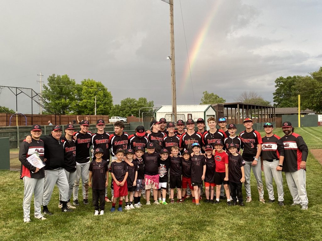 The game moved into extra innings as the rain began to fall at Shaffer Park. Howie Donoho came on in relief for Chillicothe and continued the high level pitching for the Hornets. Scoreless frames in the 8th, 9th, and 10th all gave Chillicothe chances for walk off winners. In the 10th inning, the breakthrough was seemingly there for the Hornets when Rinehart advanced to 2nd and Ireland sent a single into center field bringing the Hornets crowd to their feet. Rinehart rounded 3rd base, heading home but Pleasant Hill’s centerfielder Brady Roe rifled a perfect throw directly on the base path tagging out Rinehart just a few feet from victory.