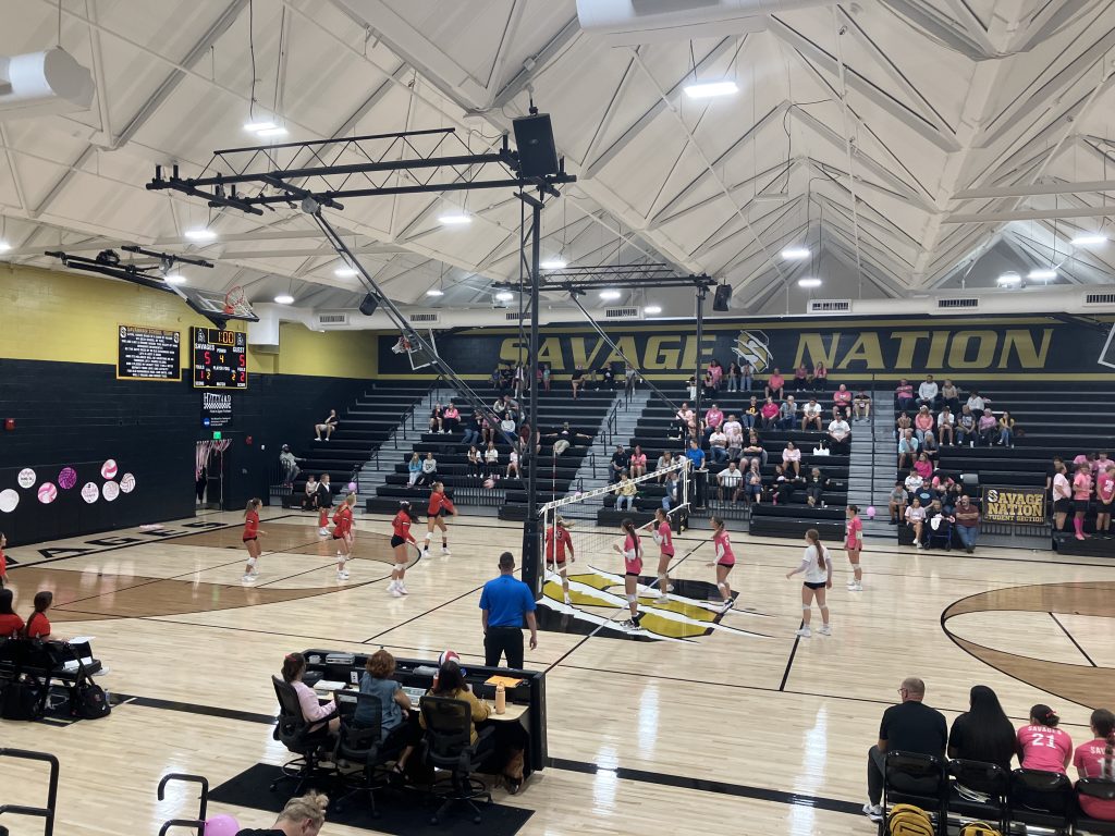 The Lady Hornets opened the match playing at an extremely high level against the Savages on their Pink Out night. The senior quartet for Chillicothe set the tone from the opening serve, Ava Leamer and Emerson Staton served well to give the Lady Hornets a lead, Carman Woodworth set up her teammates when pinpoint passes and Lyla Beetsma was relentlessly attacking the net. Chillicothe held a 13-7 advantage and was still ahead at 20-15 before Savannah made a late rally. The Savages stonewalled Chillicothe on a pair of set points, before taking their opportunity and sending the home crowd into a frenzy by pulling the first set out of the fire with a 27-25 come from behind win.