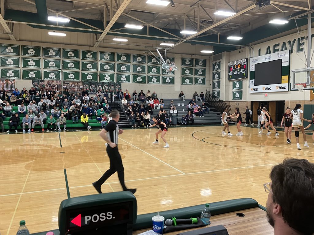 Early on, Lafayette’s duo in the post controlled the game on both ends. Laniya Carrigar at 6’3” posed more length than the Lady Hornets were accustomed to, pulling down rebounds, blocking shots and deflecting passes, while scoring 10 first half points. Emery Oman provided more physicality down low, and displayed her range for the Lady Irish hitting a pair of outside jumpers leading to 13 points before the break.