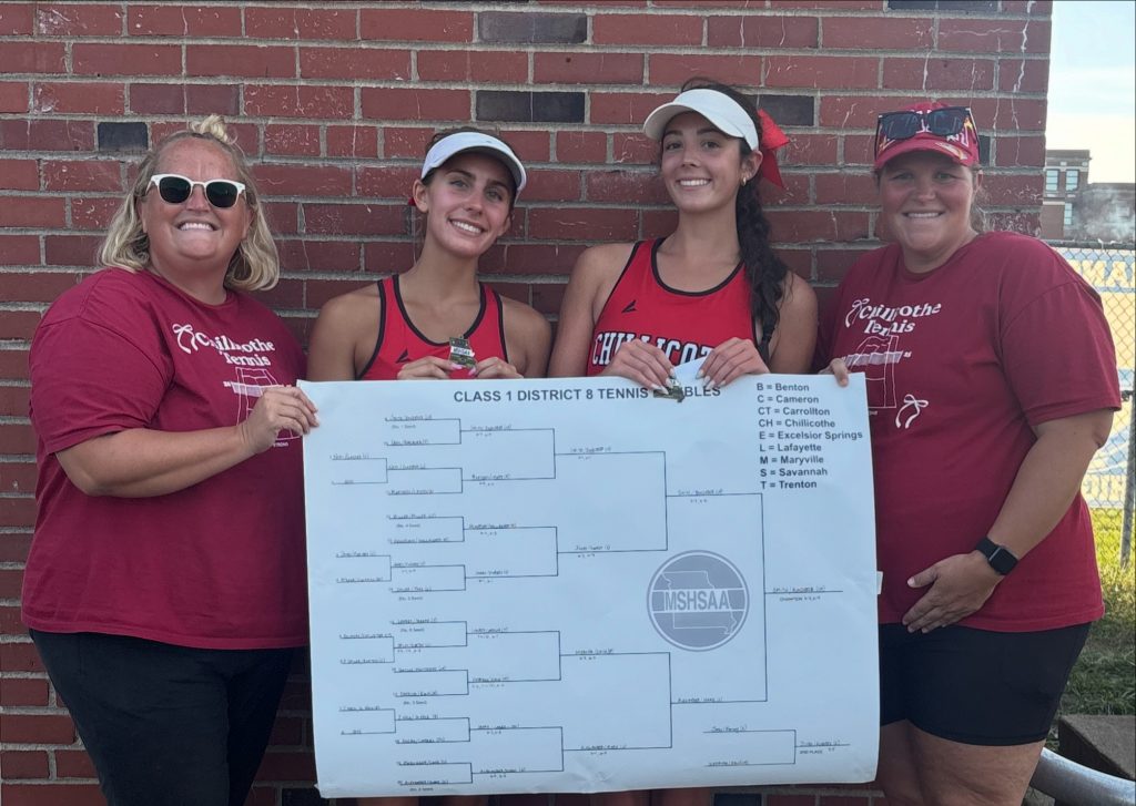On a rainy, cloudy, chilly Friday morning, the Lady Hornets varsity tennis team headed for the fifth time this season to Noyes Tennis Complex in St. Joseph, this time for the Individual MSHSAA District Tournament. In this tourney, teams must enter two singles competitors and two doubles pairs. Chillicothe fielded Anya Moore and Helena England in singles with Lexy Smith & Lydia Bonderer in doubles as well as Summer Gatson & Rian Mathews in doubles. After the seeding meeting, Smith and Bonderer were unanimously approved as the #1 doubles seed while the other Hornets were placed on the bracket by hat draw. The hat draws proved tough for CHS, pairing everyone versus a very tough opponent in either the first or second round, which proved how critical it was for Smith & Bonderer to have won conference the week before, making their bracket more clean cut.