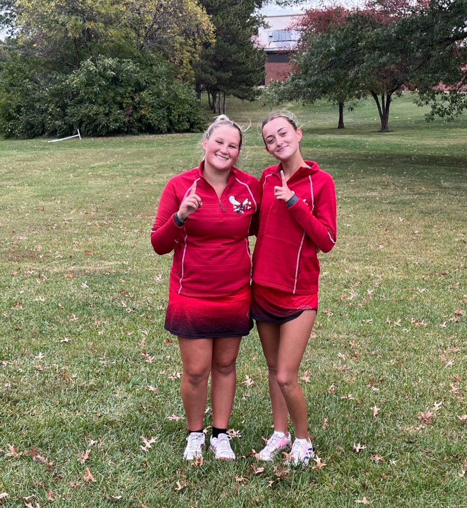 At MSHSAA Sectionals Tennis on Friday morning in Trenton, seniors Rylee Washburn & Isabella Garr dominated their doubles match-up against Savannah’s Fischer & Moore winning two full sets in only 45 minutes. The Chillicothe pair was on fire despite the 45-50 degree temperatures, light rain, and strong winds. They came out of the gate strong with deep hits & great line shots. The partnership picked up six straight games to win the first set 6-0. In the second set, Savannah’s doubles did win one game mid-set due to their solid ground strokes & tough hustling. However, Rylee & Izzy really turned on their net aggression at that point, and it was too much to handle. They won the second set 6-1 and punched their tickets to the State Doubles Tournament. The girls would like to thank the Chillicothe community for their ongoing support of their tennis careers. They’d especially like to thank former coach Ed Douglas for all the extra hours he has spent hitting with them each week for the past two months. Rylee and Izzy are confident that their additional drills with Ed have increased their level of play in the post season. They would also like to express their gratitude for former collegiate player Dr. Kelly Deering and husband Rick for their weekend hours spent giving them tough doubles practice matches.