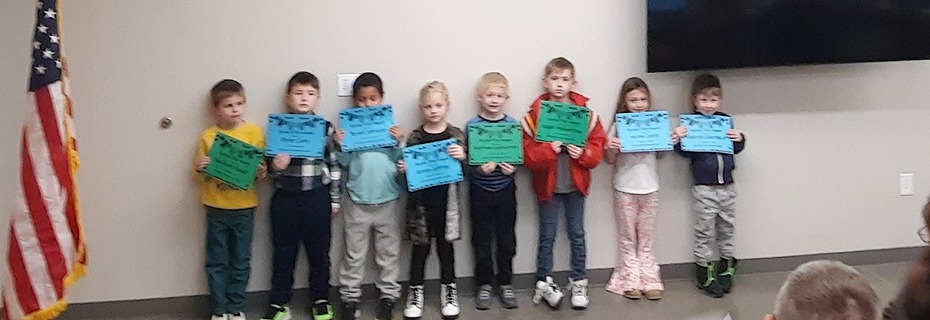 Kindergarten and First Grade students from Chillicothe Elementary School were recognized at this week’s School Board meeting.  The students are “Bucket Fillers.”  Principal Megan Hardie was helped in explaining the Bucket Filler program.